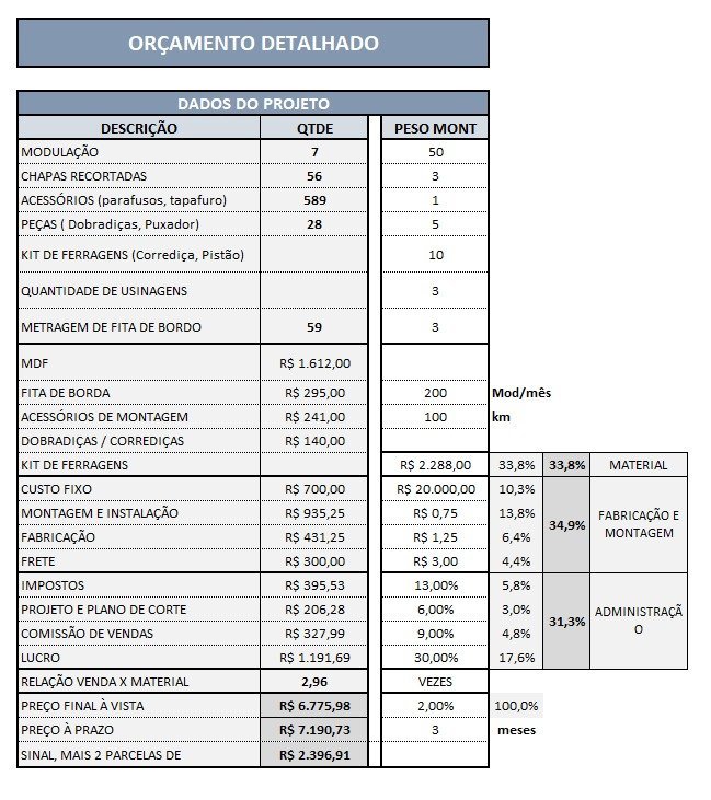 → Fazer orçamentos detalhados e completos para tomada de decisão