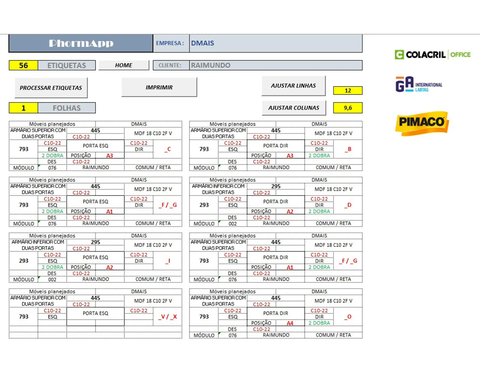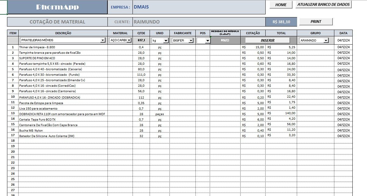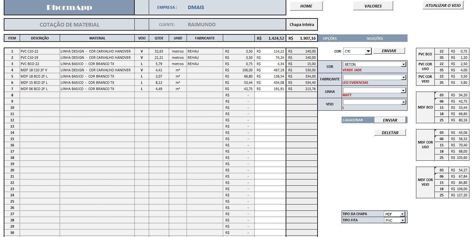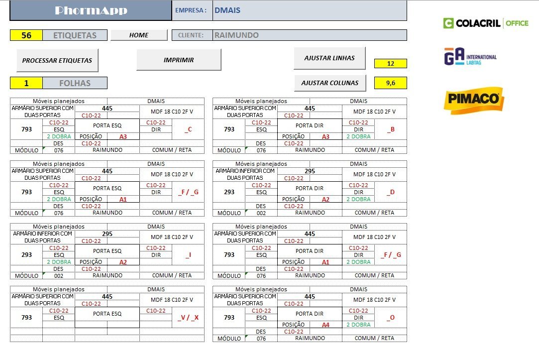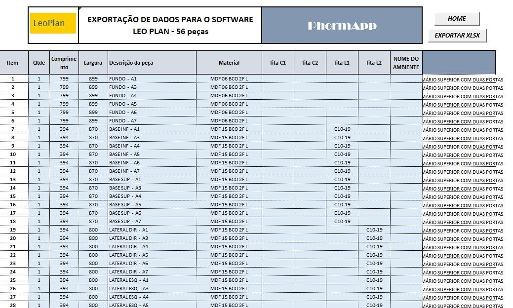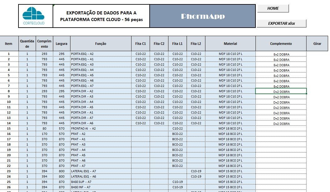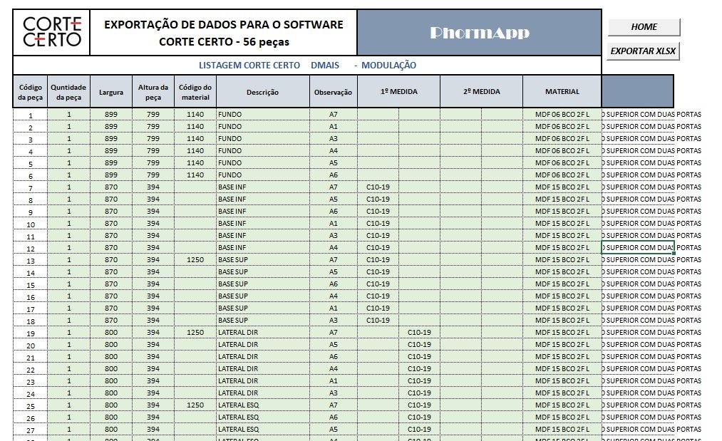 O aplicativo já contém todas as ferramentas necessárias para processar sua lista de corte e material, mas um conhecimento básico do Excel, irá ajudar muito no seu aproveitamento e agilidade com seus projetos